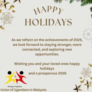 Stay connected and inspired with the Union of Ugandans in Malaysia (UUM) as we bring you exciting upcoming events that celebrate unity, culture, and community. From cultural and independence celebrations to social meetups, workshops, and charity drives, our events are designed to bring Ugandans and friends of Uganda together in the heart of Malaysia. Whether you’re a student, professional, or visitor, there’s always something meaningful and enjoyable waiting for you. Follow us on social media and check back often for the latest updates on upcoming events and activities!