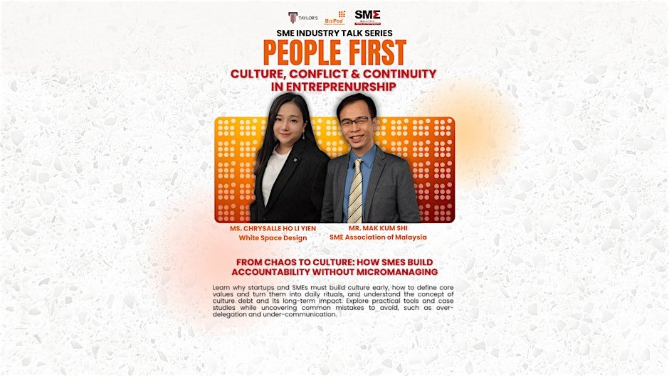 The SME Industry Talk Series presents People First: Culture, Conflict and Continuity in Entrepreneurship, featuring Ms. Chrysalle Ho Li Yien, Director of White Space Design, and...